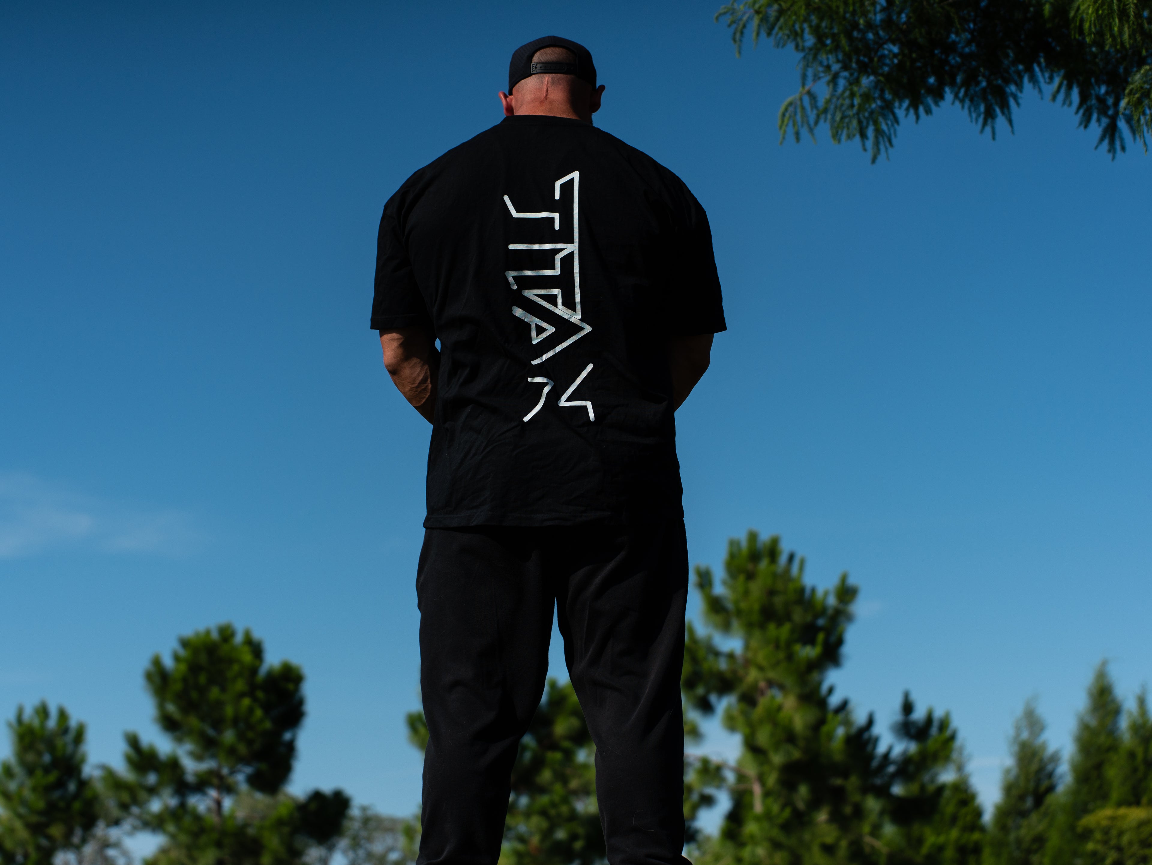 Sizes start are 4XL to 5XL — because Titans don’t shrink to fit the world, the world expands to contain them.
