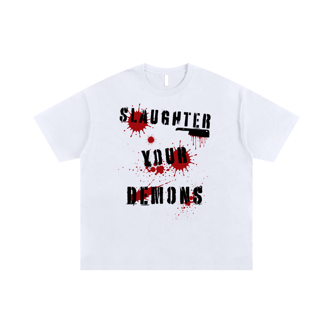 Part of our Halloween Edition, this oversized pump cover is designed to bring raw intensity to your grind. Made from lightweight, breathable cotton with a relaxed fit, it features bold front graphics with splattered blood effects, a dripping cleaver, and the words: “Slaughter Your Demons.”